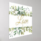 El diseño incluye la palabra "amor" escondida en un ramo de hojas de eucalipto. ¡Hace un gran regalo de Boda!