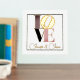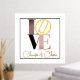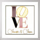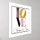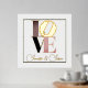 Impresión romántica de Relieve metalizado, con la palabra AMOR hecha en oro, rosa, negro y taupe, sobre un fondo blanco, con un delgado marco dorado alrededor del borde exterior. Personaliza el texto dorado, en la parte inferior, para leer lo que quieras.
