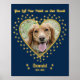 Cambie la foto de su perro o gato por la foto de este mascota personalizado en memoria de su Relieve metalizado de oro 8x10. Monumento perfecto para un perro mascota o gato mascota. El nombre y los años de vida también pueden ser personalizados. El verso dice que dejaste huellas de pata en nuestros corazones. Esto también se puede cambiar a lo que quieras. Obtén esta preciosa impresión de Relieve metalizado de oro como regalo para la memoria del mascota perdido de una persona. El corazón real de Relieve metalizado dorado y la pata imprimen el marco de la foto, emparejado con la verdadera redacción personalizada de Relieve metalizado de oro. El color de fondo azul marino puede cambiarse a cualquier otro color que desee en la herramienta de diseño.