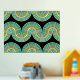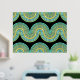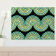 Precioso patrón de líneas de olas abstractas geométricas de color Relieve metalizado dorado sobre fondo negro, con agua contemporánea, turquesa, azul, jade y verde. Elegante, elegante y ecléctico diseño minimalista para el artista de moda de cadera, estilo de arte retro vintage, o amante abstracto de los motivos geométricos digitales. Coincide con el diseño con los colores de la decoración y decora la pared con algo exclusivo y único en la pared.
