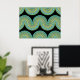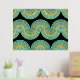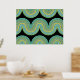 Impresión Metalizada Aqua Blue Abstract Wave Lines Art Pattern Gold