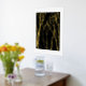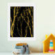 Impresiones de papel de aluminio de árboles negros y dorados.