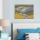 Obtén tu verdadera huella de Relieve metalizado dorado de 18x24 pulgadas con un paisaje montañoso morado azul con árboles dorados, río morado y luna blanca. Es un diseño lujoso y abstracto para modernizar tu casa y paredes. Diseñado por Hobinishop