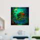 Decorar tu pared o esquina en tu oficina con este poster de Relieve metalizado dorado o plateado: animales marinos submarinos profundos y corales marinos con un submarino de pulpo de vapor.
