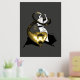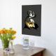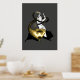 A fun fusion of ancient Egyptian mythology and artistic expression. Well known Cat Goddess Bastet is depicted as a bellydancer playing her ancient instrument sistrum. As the music notes gradually diminish in size, they transform into the scales of the nefarious serpent, Apep (also known as Apophis).