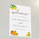 Moderno boda de cítricos limón y acuarela naranja recibe al poster de Relieve metalizado dorado. Pintura acuática única de naranjas y segmentos naranjas con follaje verde y limones amarillos en una rama con segmentos de vegetación y limón. Guión elegante de fácil personalizar para tipografía de Relieve metalizado dorado con el nombre de la novia y de los novios, la fecha del boda y su propio mensaje de bienvenida. Pintura original de la artista Catherine Sweetman