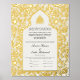 Elegante Certificado Nikah en Zazzle Transforma tu ceremonia Nikah en un recuerdo eterno con nuestro exquisito certificado Nikah, ahora disponible en Zazzle. Este impresionante certificado presenta un verdadero borde de marco estilo arco de una mezquita de Relieve metalizado dorado, creando un aura de elegancia intemporal. El diseño cuidadosamente diseñado logra un equilibrio perfecto con la tipografía negra, mejorando el atractivo visual y el significado de este sagrado documento. Características principales: Real borde del Relieve metalizado dorado: El borde del marco estilo arco de la mezquita está adornado con genuinos acentos de Relieve metalizado de oro, añadiendo un toque de opulencia y espiritualidad a tu certificado Nikah. Hermoso Diseño Ornato: Los detalles intrincados y los elementos ornamentales hacen de este certificado una verdadera obra de arte, simbolizando la santidad de tu unión. Personalizable: Personaliza tu certificado Nikah con tus nombres, fechas y otros detalles relevantes para hacerlo único tuyo. Elija entre varios estilos de fuente y tamaños para que coincidan con sus preferencias. Disponible como Poster: Nuestro certificado Nikah puede solicitarse como poster de alta calidad, adecuado para encuadernación y exhibición en su casa. Hay varios tamaños disponibles para adaptarse a tus preferencias de espacio y diseño. Captura la esencia de tu ceremonia de Nikah y celebra tu amor con este exquisito y completo certificado de personalizable Nikah. Aprecie la belleza de esta unión sagrada en los años venideros enmarcándola y mostrándola como una pieza de arte atemporal.