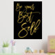 Cita Motivacional Sé tu mejor Relieve metalizado de lujo real de color negro autoguion en tu elección de oro o plata para la cita positiva Lo tienes en un fondo negro clásico que puedes cambiar a otro color si así lo deseas.