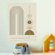 Formas geométricas simples y minimalistas, composición moderna 2 con tonos pastel suaves sobre un fondo crema claro.
