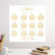 Este verdadero poster de Relieve metalizado de oro se puede enmarcar para hacer el cuadro de asientos perfecto, elegante y de moda para boda, Barmitzvah, Bautismo, Graduación u otro evento como se desee. 12 Las tablas, 8 nombres por tabla, se pueden editar y se puede cambiar el color de fondo. Relieve metalizado de oro real (o puede cambiarse a plata para adaptarse a su tema de evento).