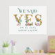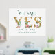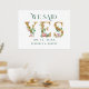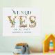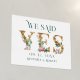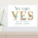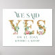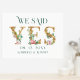 Marque su día especial con este encantador diseño. Dijimos -Sí- Carta dorada acentuada con ramos de flores rosadas y tipografía verde directa.