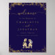 Dinosaur Theme Wedding Welcome Poster Sign Navy Blue & Gold Foil with T-Rex Bride and Groom Jurassic Dino