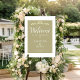 Sencillo Y Elegante Relieve metalizado Boda Con Ornamento De Oro. Diseño sencillo con escritura blanca a la moda y un elegante adorno en Relieve metalizado dorado. Elegante signo de bienvenida de boda. Personalice todos los nombres de texto, novios y bodas.