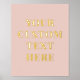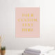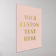 Elegante impresión de poster rosado con su texto personalizado en tipografía de Relieve metalizado de oro real. Cambie el tamaño del texto y el color de fondo editando en la herramienta de diseño.