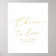 Un elegante cartel para tu boda o bebidas de bienvenida, con "vítores a amar" en Relieve metalizado real prensado oro moderno tipo caligrafía. Personalice su nombre y fecha de boda.