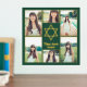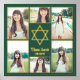 Cambia las seis fotos de las fotos de tu propio hijo para esta foto de un niño personalizado Estrella Judía de David, Relieve metalizado real de oro impreso. Personalice el nombre y el nombre hebreo. Marco y palabras reales de oro en Relieve metalizado de oro. Puede cambiar el verde del bosque a cualquier otro color que desee en la herramienta de diseño. Genial para fotos de niños o chicas.