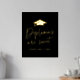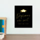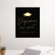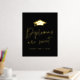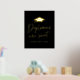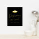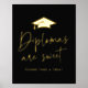 Letrero moderno de fiesta de graduación con una ilustración de una gorra de graduación de papel de oro en la parte superior con "Diplomas son dulces" en un guión manuscrito de papel de oro sobre un fondo negro. Personalice el letrero de graduación negro y de papel de oro con su texto personalizado (actualmente mostrado con "por favor, tome un regalo"). El letrero de fiesta de graduación de papel es perfecto para mostrar en una mesa con postres o dulces de fiesta de graduación para sus invitados.