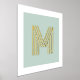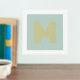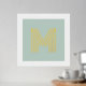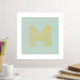Poster que presenta su monograma inicial en un divertido y retro tipo de letra en un fondo color verde mar pálido o personalizado.