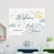 Bienvenido a su ducha de bebé con este elegante y elegante cartel de bienvenida. Presenta un elegante guión de caligrafía, acompañado de estrellas dibujadas a mano, nubes y una luna creciente en Relieve metalizado. Perfecto para las duchas de luna y de bebé estrella como "sobre la luna", "la pequeña estrella del brillo del brillo" y "amado a la luna y a la espalda". No deje de visitar la tienda y la colección para ver más.