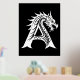 Impresión Metalizada Letra A con estilo dragón, alfabeto dragón, monogr