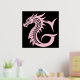 Impresión Metalizada Letra con estilo dragón G, alfabeto dragón, monogr