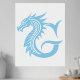 Impresión Metalizada Letra con estilo dragón G, alfabeto dragón, monogr