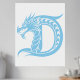 Impresión Metalizada Letra D con estilo dragón, alfabeto dragón, monogr