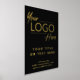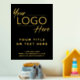 Firma moderna y elegante de poster profesional negro para su negocio con su logo y su título personalizado y otro texto en Relieve metalizado real de oro o plata. Cargue una versión en negro de su logotipo para el efecto Relieve metalizado.