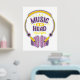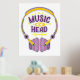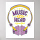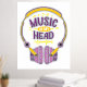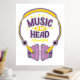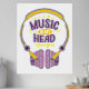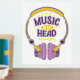 Ilustracion colorido de un par de auriculares y el texto "Música en mi cabeza" perfecto para los amantes de la música, coleccionistas de música y entusiastas.