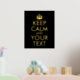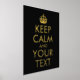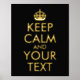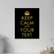 Crea tu propia parodia motivacional de los clásicos posters "MANTENER CALMA Y SEGUIR". Esta muestra es oro sobre negro. Personalizar el color de fondo. Si necesita cambiar el tamaño del tipo de letra, sugiero que seleccione todos los elementos juntos y reduzca el tamaño como grupo. De esa manera, se puede mantener el aspecto básico del diseño tipográfico.