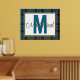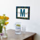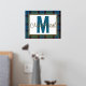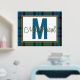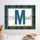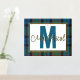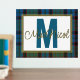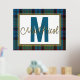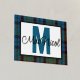 Bonita impresión de Relieve metalizado de lona escocesa, con un Relieve metalizado dorado enmarcado en área de texto, contra el fondo escocés de tartán de caza MacNicol. Un gran monograma federal de una sola letra azul y un nombre de Relieve metalizado dorado están listos para personalizar.