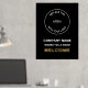 Logotipo de marca de la compañía Bienvenido Relieve metalizado de lujo Real en su elección de oro o plata para la bienvenida. Reemplace el gráfico de ejemplo con su logotipo y personalice el texto según sea necesario. Sobre un fondo de negro elegante.