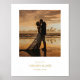Elegante boda minimalista de impresión de fotos con fuentes de Relieve metalizado dorado que escriben sus nombres, fecha de boda y ubicación debajo de una foto boda.