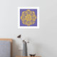 Esta hermosa huella de arte cuenta con un verdadero ilustracion de flores de Relieve metalizado dorado de mandala sobre un fondo de lavanda violeta. Ideal para añadir un toque de lujo a un estudio de yoga o a un espacio de meditación.