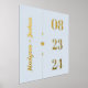 Impresión de Relieve metalizado dorado azul pálido con la fecha y los nombres de su boda, y dos flechas apuntando hacia el corazón.