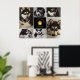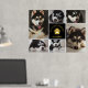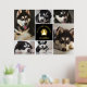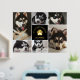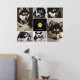 Black pet memorial photo print printed with a photo collage of six photos featuring your beloved pet. Add their name too in gold foil beneath a paw print.