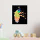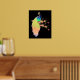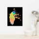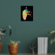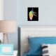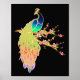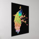 Relieve metalizado dorado impreso, con un pavo real colorido sentado en una rama de un árbol de flores de cerezo, contra un fondo negro. Impresión asombrosa que va bien en cualquier habitación.