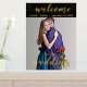 Signo de bienvenida boda. Elegante oro, oro Rosa o Relieve metalizado plateado con tu foto.