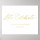 Bienvenido a tu recepción de bodas y celebra la ocasión con este elegante cartel con un verdadero Relieve metalizado de oro. Capacidad de personalizar de dos secciones de texto para adaptarlas a sus necesidades de eventos. Diseño con la frase "Celebremos" en caligrafía escrita a mano elegante y moderna. 10" x 8" es simplemente nuestro tamaño por defecto, usted tiene la capacidad de elegir entre una gran variedad de opciones de tamaño. Posibilidad de cambiar el color de fondo seleccionando "Editar usando la herramienta de diseño", que le permitirá acceder a la pantalla del editor donde en la capa "frontal" puede cambiar el color de fondo como desee. "NOTA IMPORTANTE: Este signo está en un estilo de papel poster de primera calidad, fácil de enmarcar o pegar/grapar a MDF baratos o tablero de espuma para su visualización. Parte de nuestra colección "Real Relieve metalizado Moderno Elegante Boda y publicidad de eventos" con una variedad de productos de coordinación disponibles. Dimensiones del letrero en la foto de demostración con soporte: 24" x 18"