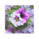 Una bonita impresión metalizado de colores veraniegos, morado y blanco, de flores. Petunia y flores de Verbena.