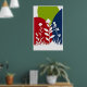 Esta obra de arte digital minimalista utiliza un espacio negativo para definir las formas de planta frente a los campos de color abstractos vibrantes. Sus audaces siluetas gráficas y sus brillantes ilusiones crean un punto focal fresco y atractivo perfecto para interiores modernos que buscan arte de plantas espaciales negativas, una vibrante decoración minimalista e impresiones gráficas vectoriales.