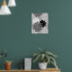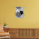 Poster en una versión moderna de una impresión tradicional japonesa de kimono floral - flores estilizadas en tonos grafito y gris claro / gris, negro y blanco sobre fondo gris medio