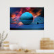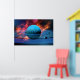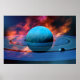 El hermoso planeta azul de Neptuno con su sistema de anillos y una de sus lunas.