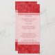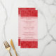 Paisley gira en torno a unas flores de color rojo intenso que le dan un toque muy agradable a esta carta boda. Impresiones de texto personalizadas en un panel de luz acentuado por bordes que repiten el patrón de fondo. Una encantadora adición a cualquier boda. Utilícelo como menú o cualquier pieza impresa que necesite para su boda, ducha o fiesta de compromiso. Personalizar con tu propio menú u otra información en la parte delantera y agrega tu(s) nombre(s) y fecha del evento o información adicional del menú en la parte posterior con el mismo patrón. Disponible en colores alternativos con productos coincidentes. com