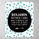 La impresión personalizada de posters de nacimiento de manchas azules presenta tipografía escrita a mano moderna y puntos de polka azul verdoso color agua. Hace un gran regalo personal. También disponible en otros colores.
