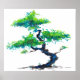 un ilustracion acuático tradicional de un árbol bonsai con colores verde y azul como impresión poster