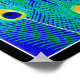 Obra de arte que representa el diseño de la pluma de pavo real en azul, verde y oro.