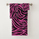 Elegante toalla de baño de diseño moderno con estampado de cebra rosada y negra, toalla de mano y tela de lavado. Artículos coincidentes en nuestra tienda.