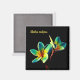 Impresionante diseño de arte digital con acuarela de dos flores plumerias en un imán refrigerador. El fondo es negro sólido y las flores están decoradas en tonos azules y amarillos. El elegante texto amarillo dice, "Aloha oukou" - un tradicional saludo hawaiano que significa "Aloha para todos ustedes". Usted puede fácilmente personalizar y cambiar la redacción si lo desea. Este diseño llamativo en un imán cuadrado atraerá la atención. Y mientras estás aquí, por qué no te detengas y visitas nuestra página de "Colecciones" para ver nuestros más nuevos diseños artísticos :)