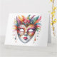 Una Colorida Tarjeta De Máscara De Fantasía. Una tarjeta para cualquier ocasión. Ir al festival, el Mardi Gras, tiempo de Carnaval. Una carta divertida y lujosa. Plumas y diversión. Esta tarjeta está en blanco en su interior para que escriba su propio mensaje Disponible como descarga instantánea para que pueda transferirla a otros productos de la tienda.